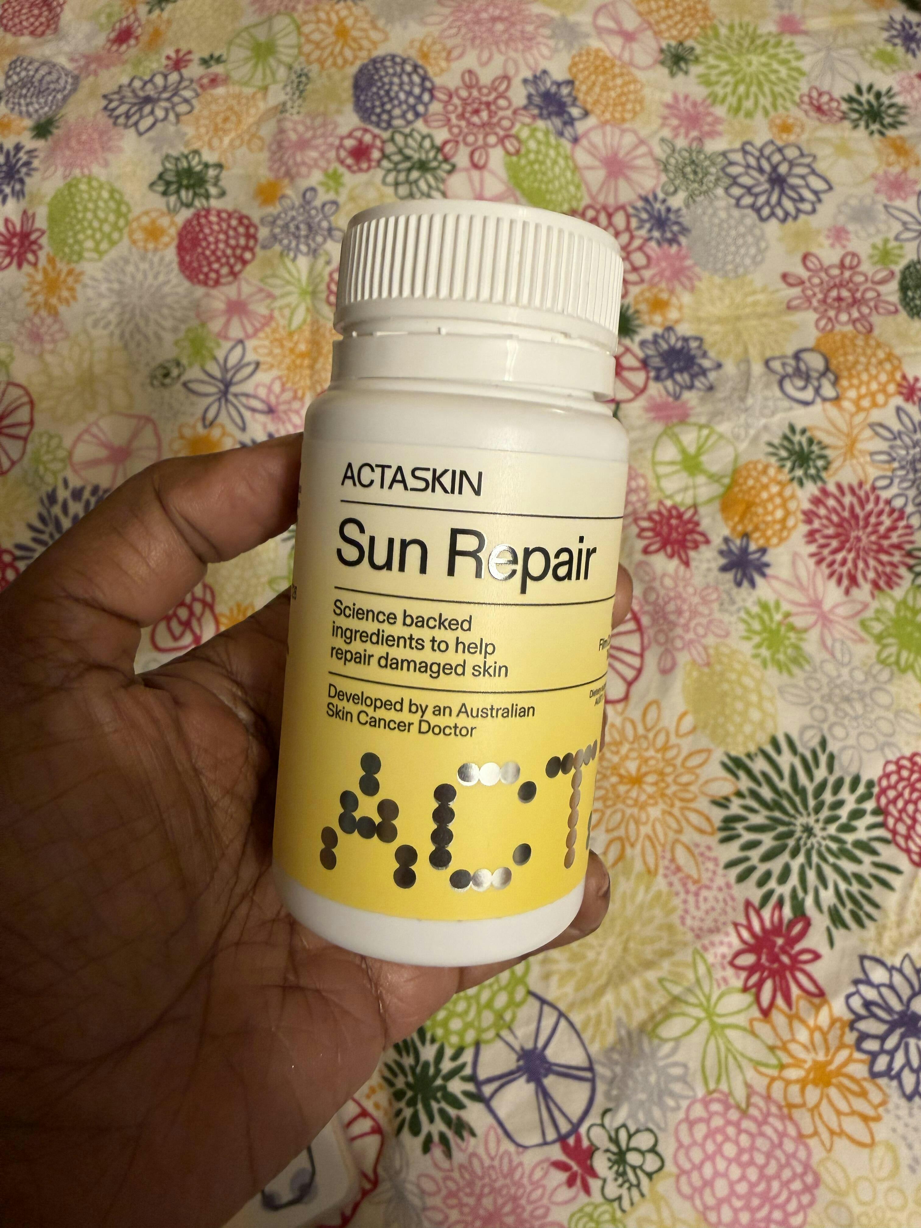 I am very happy with the sun repair supplement. I have noticed the condition of my skin is more moisturised and feels nice and smooth. I have been taking it for just over a month